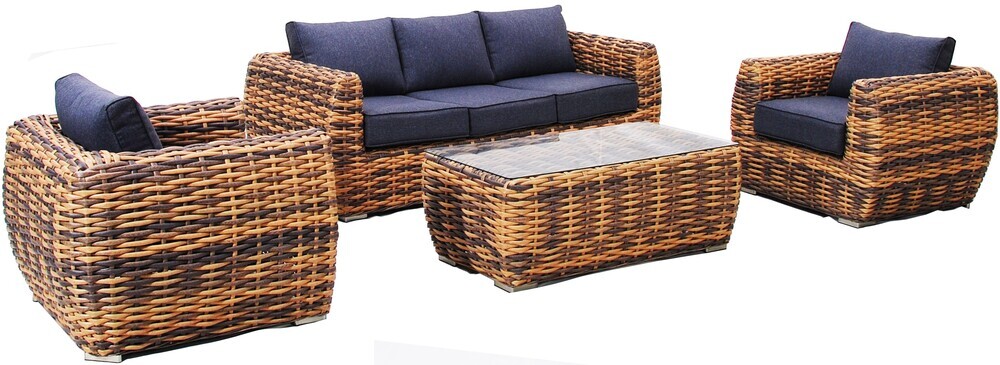 Luxusní sestava nábytku z umělého ratanu a hliníkové kostry. I když se umělý ratan podobá přírodnímu, je mnohem odolnější. Obecně lze říci, že je pružnější a je méně pravděpodobné, že se poničí.Umělý zahradní ratanový nábytek vyniká snadnou údržbou a velkou odolností vůči nepřízni počasí. Umělý ratanový nábytek se neloupe, nevznikají na něm nevzhledné praskliny, je stálobarevný po mnoho let. Jestliže nechcete mít obývací pokoj laděný ve stejném duchu jako ostatní, ratanový nábytek je možným řešením, jak se odlišit i v interiéru.Luxusní polyratanový nábytek má opravdu velmi široké využití. Je vhodný pro vnitřní i venkovní prostory, zahrady, terasy, zimní zahrady, balkony, kanceláře, jednací místnosti, recepce a další nebytové i bytové prostory. Nemusíte nic skládat ani montovat - nábytek je již připraven k okamžitému použití. Podušky jsou odnímatelné. Luxusní souprava z kvalitního umělého ratanu, který odolává UV zářenía teplotě od +50°C do -10°C.Kostra je hliníková + prášková barva.Ratan: 15x7mmDeska stolu: 5mm tvrzené skloPodušky:výplň-14 cm molitan, látka- polyester Podušky na sedací části jsou vybaveny zipem, což umožňuje snadné praní povlaku. Zádové podušky jsou prošité knoflíky a nelze povlak sejmout.