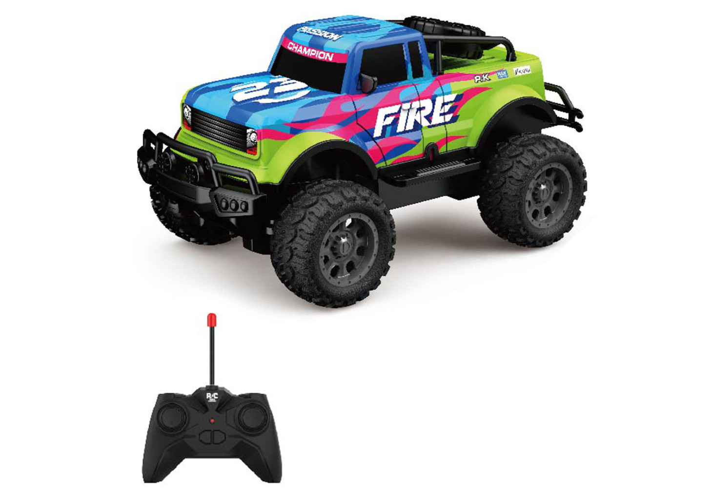 Dotaz na produktAuto Fire svítící RC na dálkové ovládání. Rozměry 23x14x11 cm. Frekvence 27MHz. Světelné efekty povrchu auta. 4xAA baterie do auta, 2xAA do ovladače nejsou součástí. Try Me tlačítko pro světelné efekty v obalu - 3xAG13 baterie (neměnitelné) součástí. Při vybalování nutno odpojit Try Me kabel z auta. Rychlost 10 km/h. Dosah až 20 m. Přepínač ON/OFF na spodní straně auta.