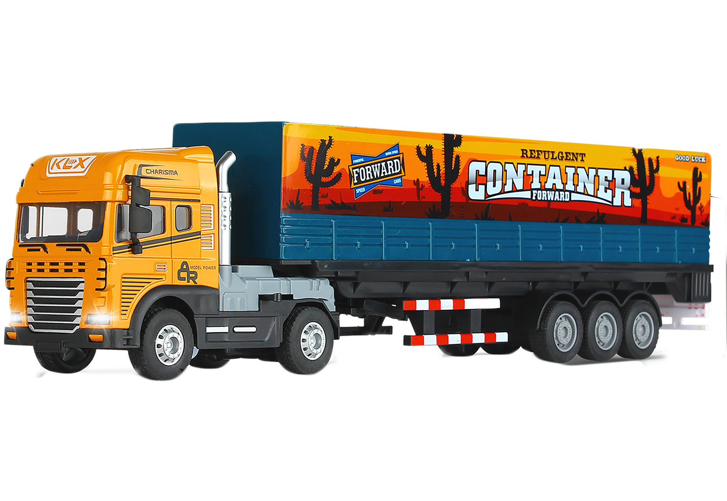 Dotaz na produktAuto kovové tahač s kontejnerem, s efekty. Délka 40 cm. Na setrvačník. Vydává světelné a zvukové efekty. Aktivace pohybem předních kol. Otevírací dvířka kontejneru. Páčka na uzamčení návěsu. Návěs je možné odpojit. Baterie 3xAG13, součástí balení.