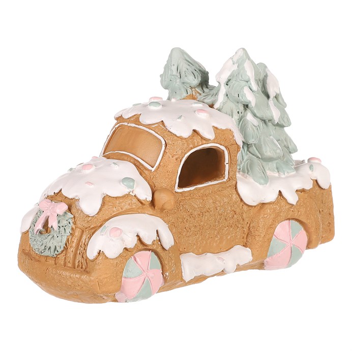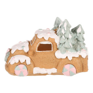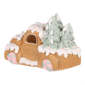 Dotaz na produktDekorace z perníku patří k nejtypičtějším a nejkrásnějším ozdobám využívaným pro vánoční čas. Toto nádherně zdobené perníková autíčko z polyresinu, doplněné LED osvětlením uvnitř, bude skvělou volbou pro ozdobení poliček, stolů a dalších viditelných míst. Vypadá jako cukrářské mistrovské dílo, které umožňuje vytvořit neodolatelný světelný efekt díky pronikajícím paprskům světla skrze okénka ven.