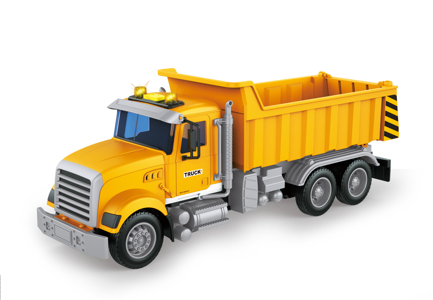 Dotaz na produktAuto sklápěč s efekty. Rozměry 31x9,5x11 cm. Na setrvačník. Světelné a zvukové efekty tlačítkem na kabině. 3xAG13 baterie do střechy součástí. Sklopná nakládací plocha uvolněním pojistného tlačítka na boční straně pod nakládací plochou. Otevíratelná zadní část nakládací plochy.