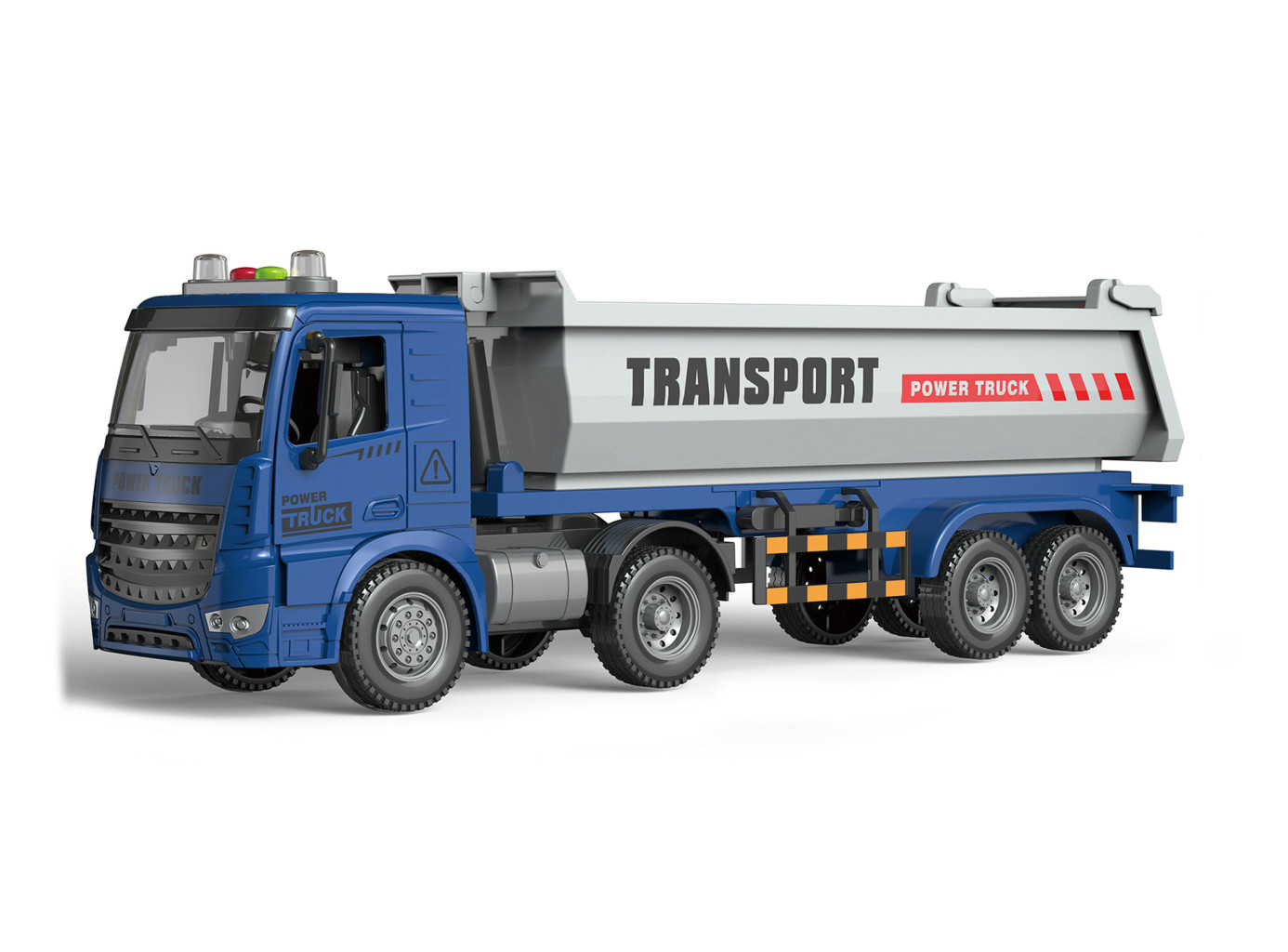 Dotaz na produktAuto tahač sklápěč na setrvačník s efekty. Velikost 38 cm. Vydává světelné a zvukové efekty. Aktivace tlačítky na střeše. Tlačítko 1 - zvuk motoru, zvuk sklápění. Tlačítko 2 - zvuk couvání, zvuk troubení. Baterie 3xAG13, součástí (1,5V). Otevíratelné dveře, sklápěcí korba, na setrvačník. Návěs je možné odpojit.
