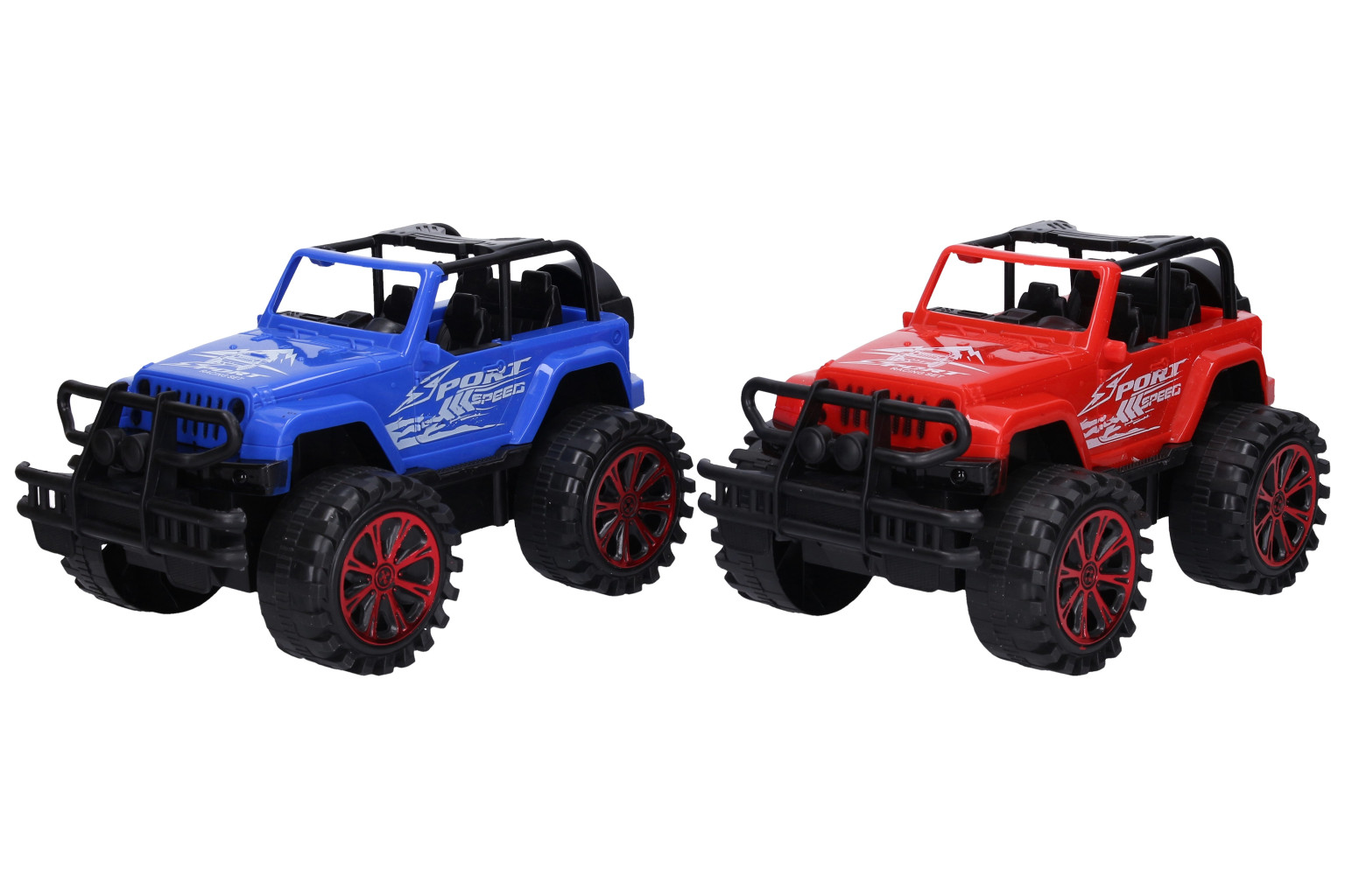 Dotaz na produktAuto terénní. Rozměry 22x14x11 cm. Na setrvačník. 2 varianty - červená, modrá.