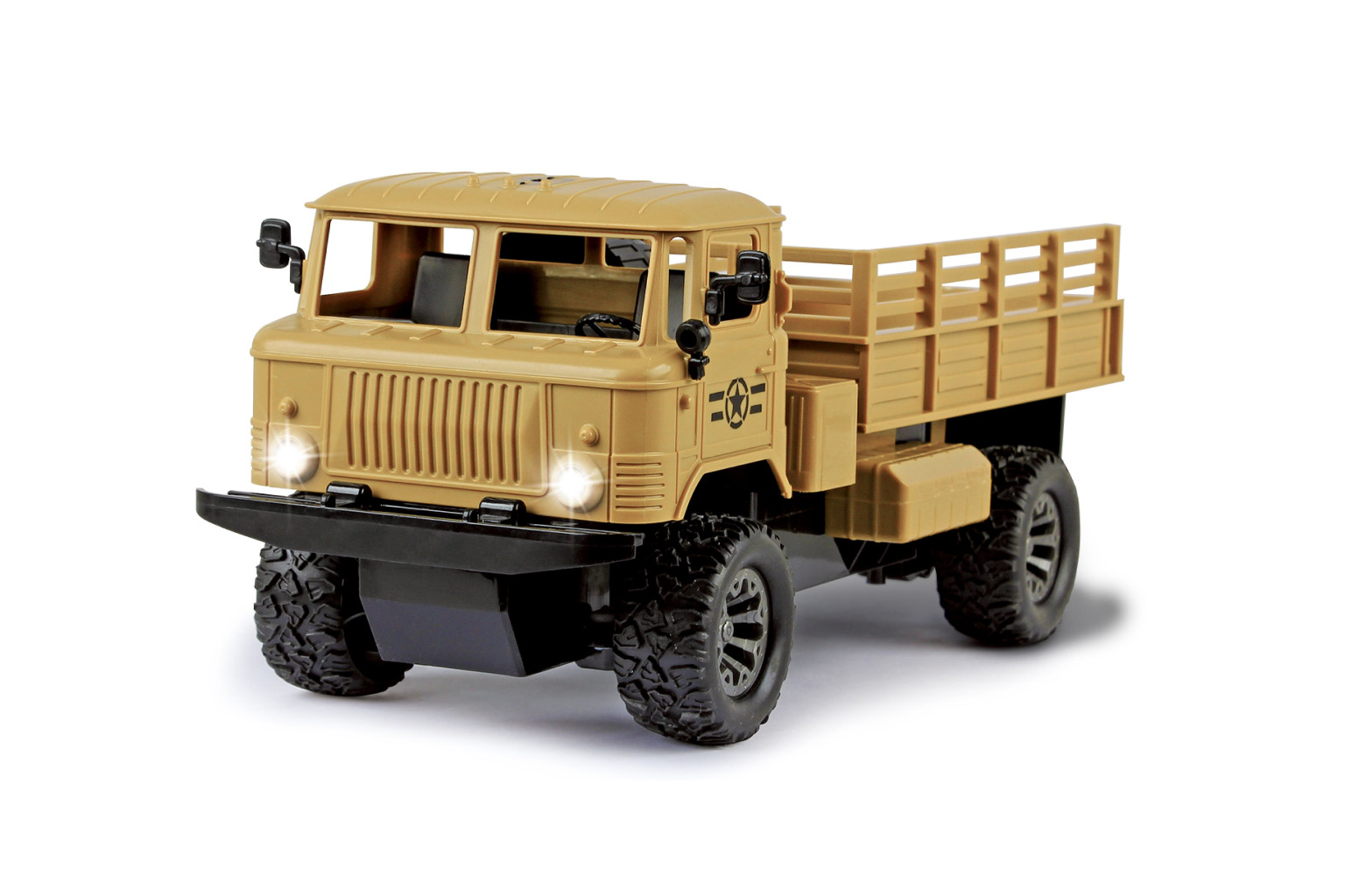 Dotaz na produktAuto vojenské RC na dálkové ovládání. Rozměry 25x12x13 cm. Frekvence 27 nebo 40MHz. Světelné efekty. 3.7V bateriový pack do auta součástí, 2xAA do ovladače nejsou součástí. USB kabel součástí. Přepínač ON/OFF na spodní straně auta.