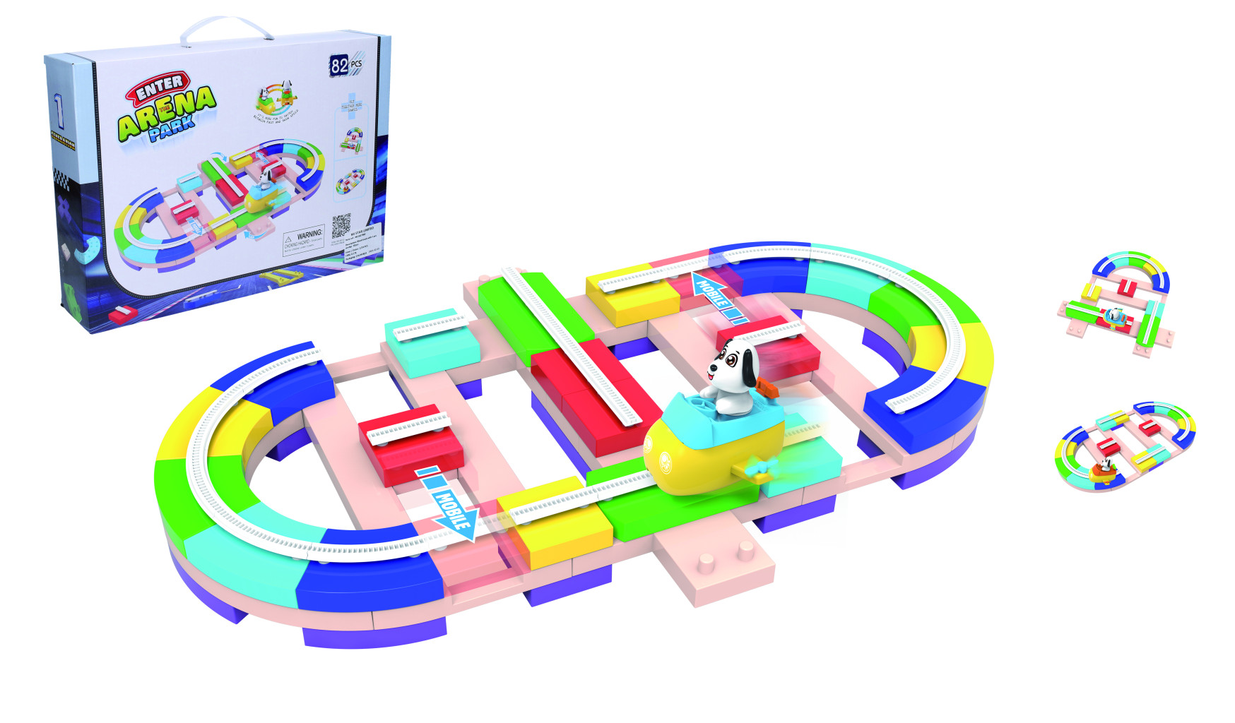 Dotaz na produktAutodráha stavebnice s vozíkem a figurkou pejska. Rozměry 59x36 cm, délka trati 118 cm. Obsahuje 82 dílků a obrázkový návod. Vozík má 2 rychlostní režimy, které se volí přepínačem v zadní části vozíku. Dráha má několik pohyblivých dílků. Manuální manipulací s těmito dílky je možné za chodu měnit dráhu jízdy. Vozík - 2xAAA baterie nejsou součástí. Pro lepší stabilitu je možné na spodní stranu dráhy umístit přísavky (balení obsahuje 10 ks).