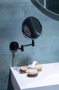 průměr zrcadlové plochy 160 mmdélka ramene 385 mm šířka x výška ve složeném stavu 210 x 280 mmmateriál lakovaná ocel, sklobarva černánástěnná instalace se sklopným ramenem oboustranné a otočnéna...