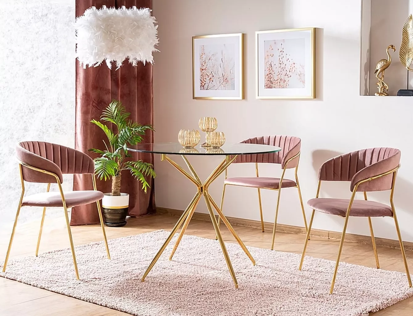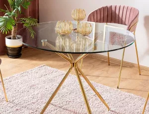 vrchní deska: tvrzené sklo, rám: kov, barva: transparentní / zlatá