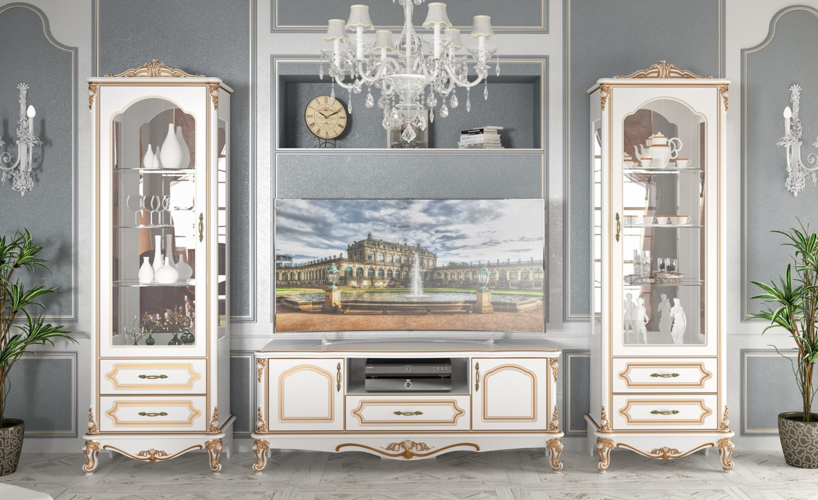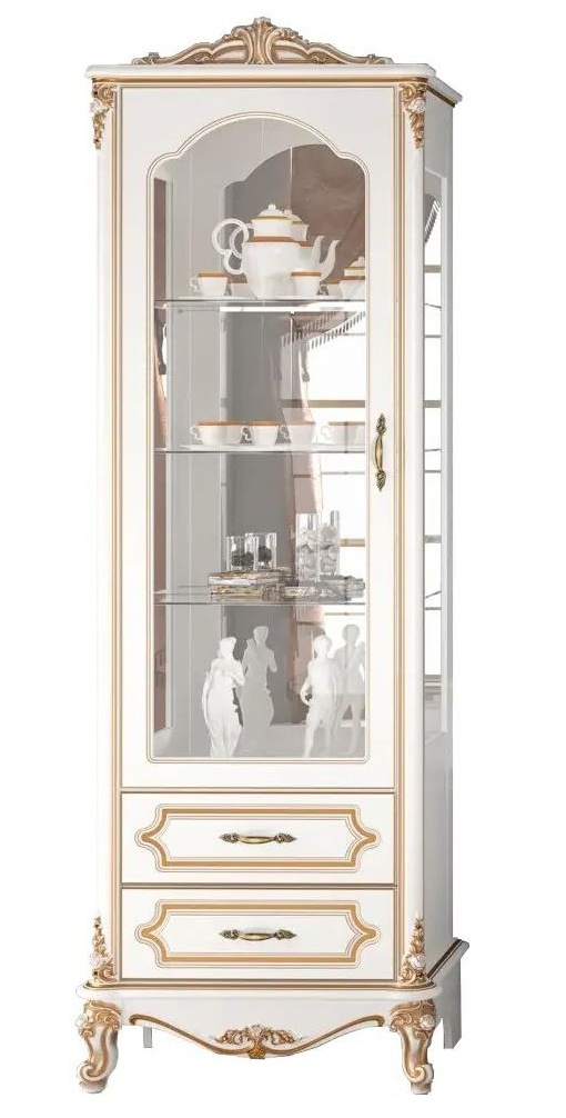 Dotaz na produkt Na splátky ještě dnesLuxusní vitrína potěší milovníky rustikálního a glomour stylu. Vytvořte si své vlastní království díky nádherné kolekci v bílo-zlatém provedení, která je vyrobena z kvalitní a pevné MDF desky. Neopakovatelný vzhled patiny ještě zvýrazňuje styl tohoto nábytku. Pevné ozdobné nožičky dodávají nábytku stabilitu. Obsahuje prosklené dvířka a 2 zásuvky. Rozměry vitríny: (ŠxVxH): 75x 220 x 49 cm. Vitrínu nabízíme v levém i pravém provedení. Dodáváme v demontu.