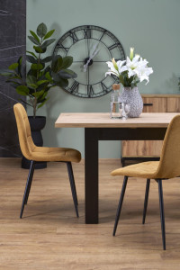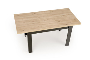 Dotaz na produkt Na splátky ještě dnesrozměry: 120-160/80/77/95 cm; rozkládací stůl, materiál: lamino nábytková deska, barva: deska - dub artisan, nohy - černá