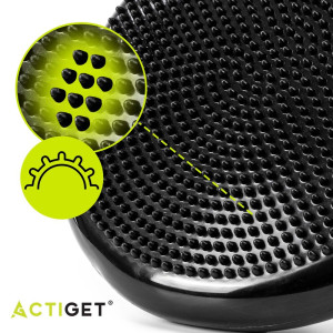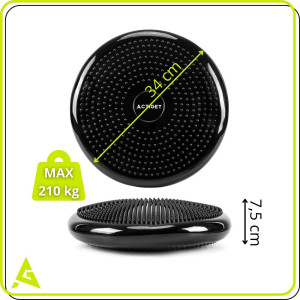 Balanční a masážní podložka + pumpička ACTIGET ACT0113 černá je vyrobena z odolného PVC materiálu a nabízí vysokou nosnost až 210 kg. Protiskluzový povrch zajišťuje bezpečné používání při cvičení i sezení. Díky nastavitelné tuhosti pomocí pumpičky lze přizpůsobit náročnost podle individuálních potřeb.