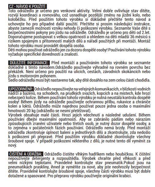Klíčové vlastnosti:Odolný ocelový rám - pevná a stabilní kovová konstrukce11palcová kola z pěny EVA - lehké pneumatiky odolné proti propíchnutí na odolných polypropylenových ráfcíchJednodílná ocelová řídítka - odolnost a bezpečnostOcelová ložiska - ABEC 7Pohodlné rukojeti TPR - měkké protiskluzové rukojetiPohodlné sedlo - sedlo vyplněné pěnou s potahem ze syntetické kůžeNastavitelná výška sedla - snadné upevnění rychloupínací svorkouDoporučený věk 2+, maximální hmotnost uživatele: 20 kgZnačení CEČistá hmotnost kola: 2,71 kg