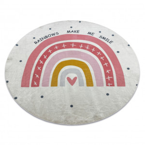ÚvodObývací pokojKoberceBAMBINO 47810 mycí kulatý kobereček Duha, tečky pro děti protiskluz - bílá / růžový