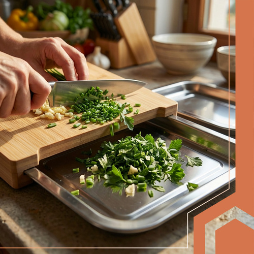 Dotaz na produktPrkénko Ruhhy usnadňuje krájení, třídění a přenášení surovin – díky dvěma výsuvným nádobám můžete pracovat rychleji a čistěji. Přírodní bambus je odolný, odolný vůči vlhkosti a elegantní, zatímco ocelové nádoby umožňují pohodlné skladování nakrájených produktů nebo zbytků. Tento funkční kuchyňský doplněk zefektivňuje vaření doma i v restauracích.