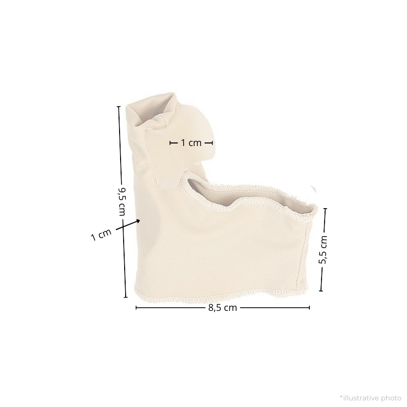 Elastický materiál Lycra se dobře přizpůsobí tvaru chodidla a drží na místě i při celodenním nošení. Bandáž zároveň podporuje přirozenější postavení palce a může tak napomoci předcházet dalšímu zhoršování vbočení. Hodí se pro běžné denní aktivity i nošení v obuvi.