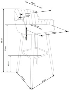 Barová židle je vyrobena v kombinaci tkanina a masiv. Barová židle je vhodná nejen do restauračních zařízení, ale i do kuchyní, jídelen a do jiných interiérů.