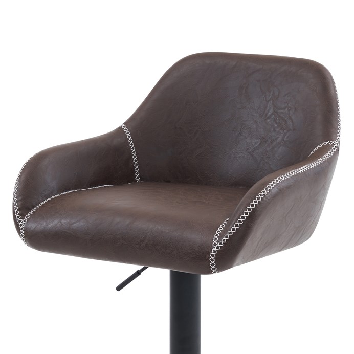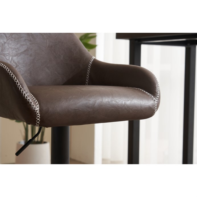 Dotaz na produkt Na splátky ještě dnesObjevte ztělesnění elegance a funkčnosti s naší luxusní barovou židlí čalouněnou hnědou látkou. Tento nadčasový kousek, vyrobený s vintage koženým povrchem, bez problémů doplní každé profesionální i soukromé prostředí.