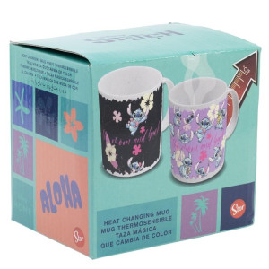 Keramický hrnek s motivem Lilo a Stitch, měnící barvu dle teploty nápoje. Po nalití horkého nápoje se změní design na obvodu hrnečku. Rozměry: 10,2 x 11,1 x 8,5 cm. Materiál: keramika. Objem: 325 ml. Hmotnost: 349 gr. Baleno v dárkové krabičce. Pro děti od 4 let. Hrnek není vhodný do mikrovlnné trouby ani do myčky nádobí. Výrobce: Stor. Stor, S.L.P. General Martínez Campos 5328010 Madrid, Spain info@storline.com