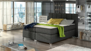 Dotaz na produkt Na splátky ještě dnesBasilio je nepostradatelným prvkem každé ložnice, který díky svému pohodlí a funkčnosti ovlivňuje nejen pohodlný spánek, ale i vizuální dojem z ložnice, bez ohledu na velikost. Basilio je boxspringová postel, která je k dispozici ve třech velikostech: 140/ 160/ 180 x 200 cm. Jednoduchá konstrukce nábytku je prolomena vysokou opěrkou hlavy vyplněnou pěnou T21 a prostornou matrací Bonell o výšce 20 centimetrů. Má dvě vrstvy pěny T25, které se nacházejí v horní a dolní části matrace, a také vrchní část z pěny T21 o tloušťce 4 centimetry. Mezi vlastnosti modelu Basilio patří opěrka hlavy s prošíváním, prostorný úložný prostor na ložní prádlo rozdělený na 3 části a široká škála dostupných barev. Nejoriginálnějším dekorativním prvkem našeho nábytku je možnost vybavení LED osvětlením. Pokud vám záleží na maximálním pohodlí, správné poloze těla během spánku a jedinečné dekoraci místnosti, která rozjasní stávající interiér - Basilio bude jistě ideální volbou. Látky: Berlin 02