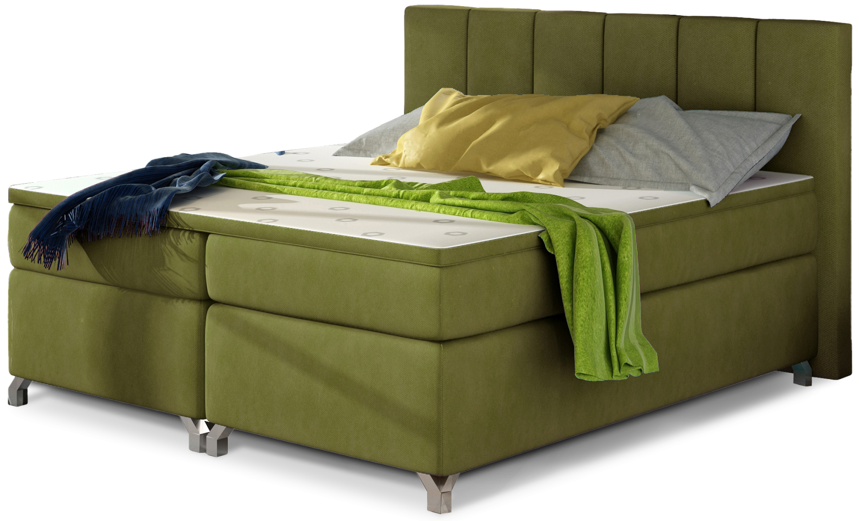 Dotaz na produkt Na splátky ještě dnesBasilio je nepostradatelným prvkem každé ložnice, který díky svému pohodlí a funkčnosti ovlivňuje nejen pohodlný spánek, ale i vizuální dojem z ložnice, bez ohledu na velikost. Basilio je boxspringová postel, která je k dispozici ve třech velikostech: 140/ 160/ 180 x 200 cm. Jednoduchá konstrukce nábytku je prolomena vysokou opěrkou hlavy vyplněnou pěnou T21 a prostornou matrací Bonell o výšce 20 centimetrů. Má dvě vrstvy pěny T25, které se nacházejí v horní a dolní části matrace, a také vrchní část z pěny T21 o tloušťce 4 centimetry. Mezi vlastnosti modelu Basilio patří opěrka hlavy s prošíváním, prostorný úložný prostor na ložní prádlo rozdělený na 3 části a široká škála dostupných barev. Nejoriginálnějším dekorativním prvkem našeho nábytku je možnost vybavení LED osvětlením. Pokud vám záleží na maximálním pohodlí, správné poloze těla během spánku a jedinečné dekoraci místnosti, která rozjasní stávající interiér - Basilio bude jistě ideální volbou. Látky: Rivera 36
