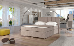 Dotaz na produkt Na splátky ještě dnesBasilio je nepostradatelným prvkem každé ložnice, který díky svému pohodlí a funkčnosti ovlivňuje nejen pohodlný spánek, ale i vizuální dojem z ložnice, bez ohledu na velikost. Basilio je boxspringová postel, která je k dispozici ve třech velikostech: 140/ 160/ 180 x 200 cm. Jednoduchá konstrukce nábytku je prolomena vysokou opěrkou hlavy vyplněnou pěnou T21 a prostornou matrací Bonell o výšce 20 centimetrů. Má dvě vrstvy pěny T25, které se nacházejí v horní a dolní části matrace, a také vrchní část z pěny T21 o tloušťce 4 centimetry. Mezi vlastnosti modelu Basilio patří opěrka hlavy s prošíváním, prostorný úložný prostor na ložní prádlo rozdělený na 3 části a široká škála dostupných barev. Nejoriginálnějším dekorativním prvkem našeho nábytku je možnost vybavení LED osvětlením. Pokud vám záleží na maximálním pohodlí, správné poloze těla během spánku a jedinečné dekoraci místnosti, která rozjasní stávající interiér - Basilio bude jistě ideální volbou. Látky: Dora 22