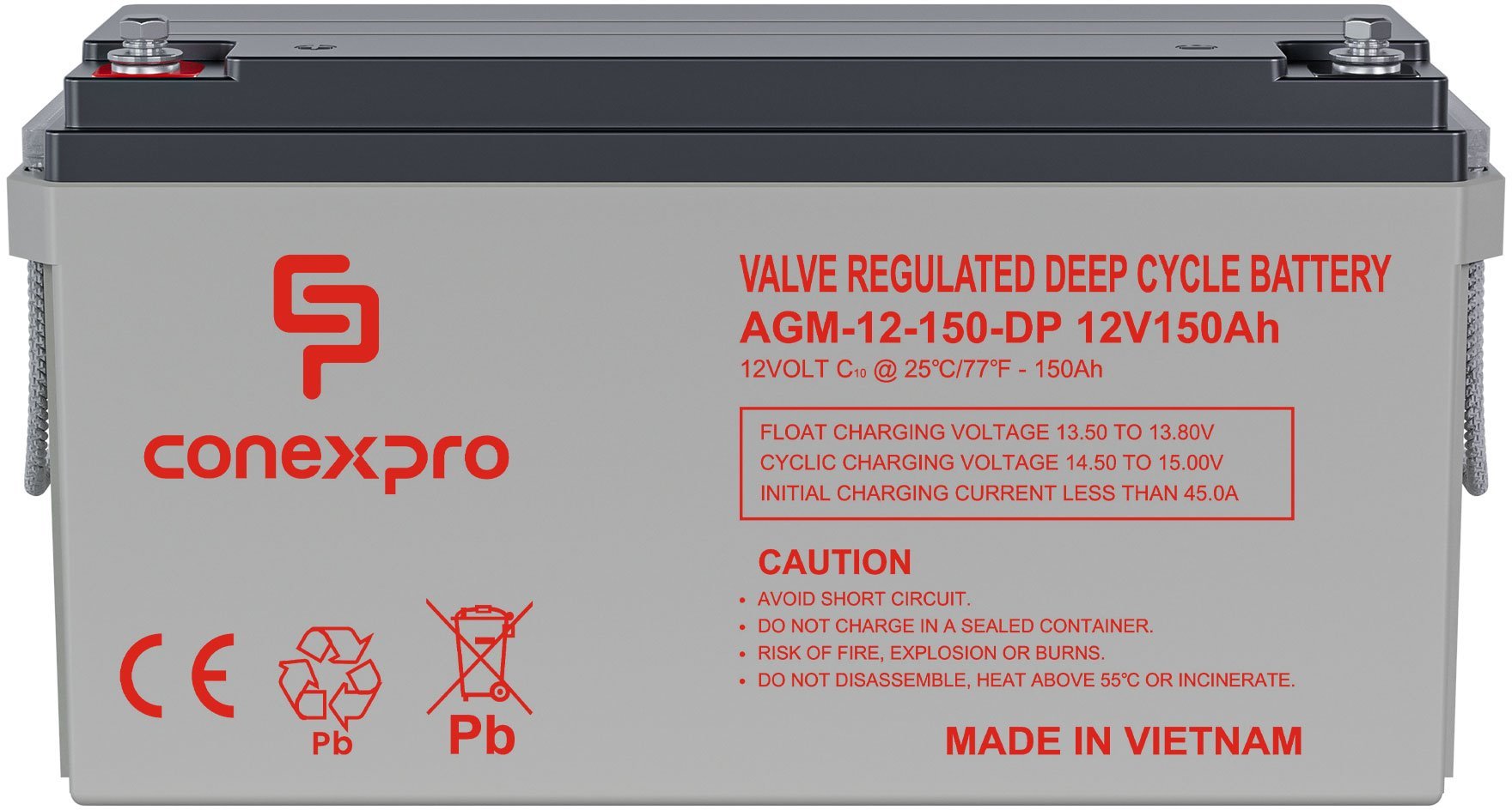 Baterie Conexpro AGM-12-150-DP představuje ideální řešení pro zařízení, která vyžadují pravidelné vybíjení a nabíjení. Díky AGM konstrukci se elektrolyt váže do skleněných mikrovláken, což zabraňuje jeho úniku a zajišťuje vysokou cyklickou odolnost. Hodí se pro využití v solárních systémech, karavanech, lodích, záložních zdrojích UPS nebo v IT a bezpečnostních technologiích. Konstrukce Deep Cycle zajišťuje stabilní výkon i při hlubokém vybíjení, přičemž nedochází ke ztrátě kapacity. Připojení k systému je jednoduché díky konektorům typu M8.