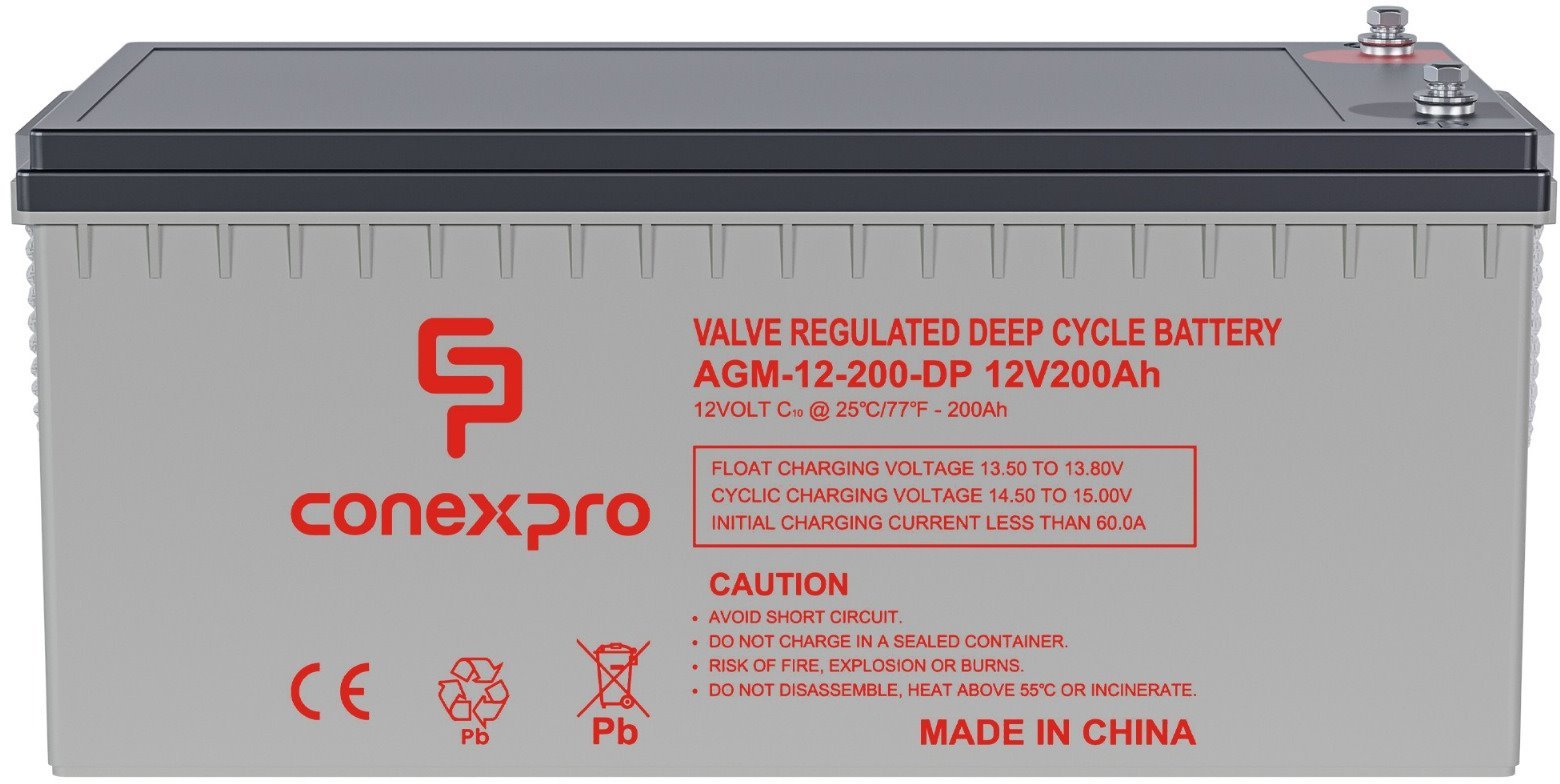 Dotaz na produkt Na splátky ještě dnesOlověná AGM Deep Cycle baterie Conexpro 12V/200Ah je mimořádně výkonným a spolehlivým zdrojem energie s dlouhou životností až 10–12 let. Díky konstrukci typu Deep cycle zvládá opakované hluboké vybíjení a nabíjení, a proto je ideální volbou pro solární systémy, karavany, lodě, UPS i profesionální IT a bezpečnostní technologie.