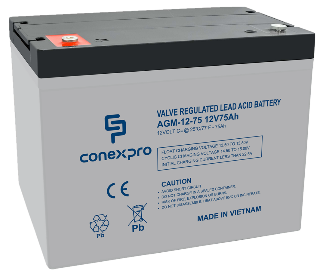 Dotaz na produkt Na splátky ještě dnesHermeticky uzavřený olověný akumulátor Conexpro AGM-12-75 o kapacitě 75 Ah a napětí 12 V je vhodný pro zdroje nepřerušovaného napájení, požární, zabezpečovací, přístupové, telekomunikační a solární systémy i pro celou řadu dalších aplikací. Řadí se mezi bezúdržbové VRLA AGM baterie s elektrolytem, který je nasáklý v netkané tkanině ze skelných vláken. Tento model je tak odolný vůči otřesům a vytečení a práce v náklonu či jiné poloze mu nebude dělat žádné obtíže. Akumulátor má navíc výborné nabíjecí charakteristiky, nabízí lepší teplotní stabilitu, odolá cyklické zátěži (nabíjení a vybíjení) a dosahuje životnosti až 10 let, díky čemuž vám bude sloužit naprosto spolehlivě.