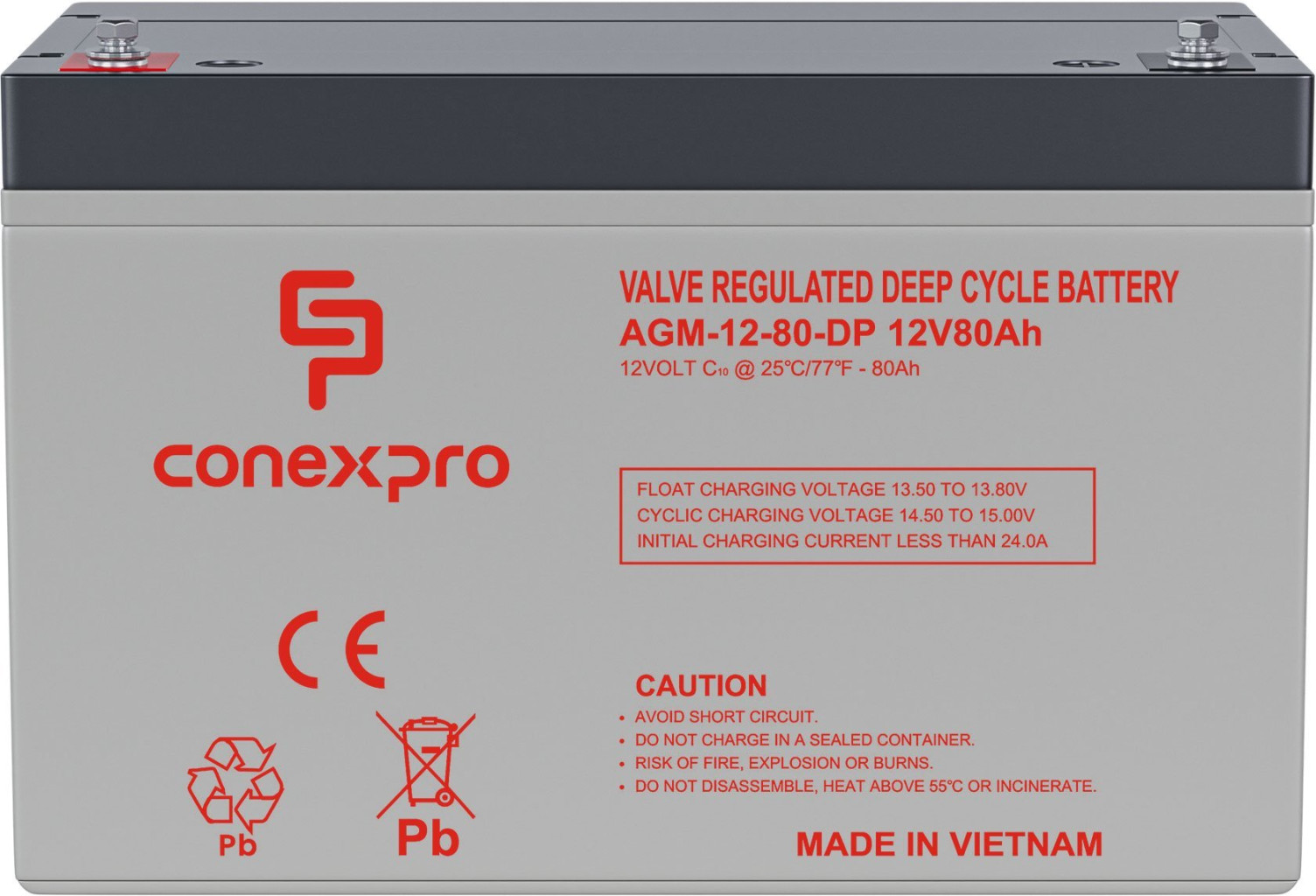 Baterie Conexpro AGM-12-80-DP využívá moderní AGM technologii (Absorbent Glass Mat), kdy je elektrolyt bezpečně vázán do skelných vláken. Tato konstrukce poskytuje vysokou odolnost proti cyklickému provozu, stabilní výkon a dlouhou životnost i při opakovaném hlubokém vybíjení. Díky bezúdržbovému provedení a univerzálním možnostem použití je ideálním řešením pro energeticky náročné aplikace.