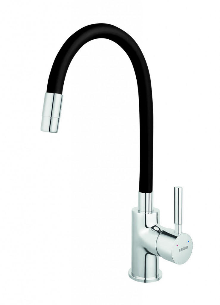Dotaz na produkt Na splátky ještě dnesBaterie FERRO 70710,0C stojánková dřezová, elastické ramínko - černá barva/Cr.