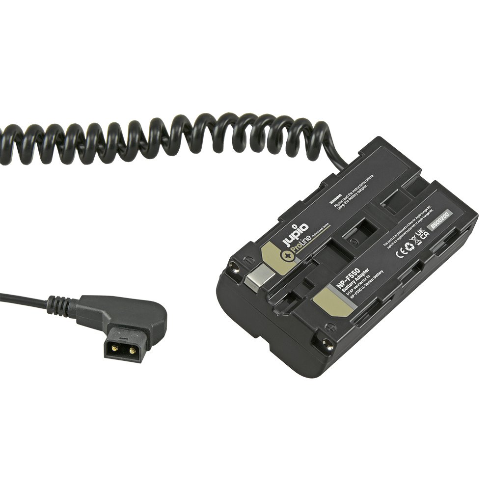 Jednoduše připojte konektor D-Tap k výstupu D-Tap baterie V-mount nebo nabíječky D-Tap a nainstalujte do fotoaparátu adaptér NP-F550.