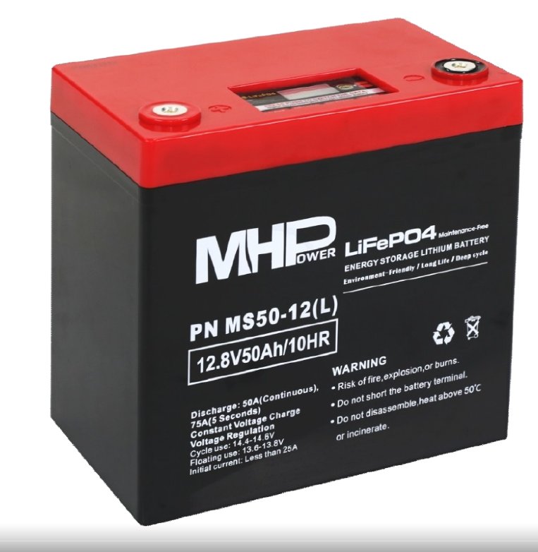 Dotaz na produkt Na splátky ještě dnesLithiová baterie MHPower s kapacitou 50 Ah má výjimečnou životnost, nízkou hmotnost a integrovaný BMS systém pro bezpečné používání bez potřeby externí ochrany. Díky využitelné kapacitě až 94 % a nízké hmotnosti se hodí pro mobilní použití i domácí solární systémy.