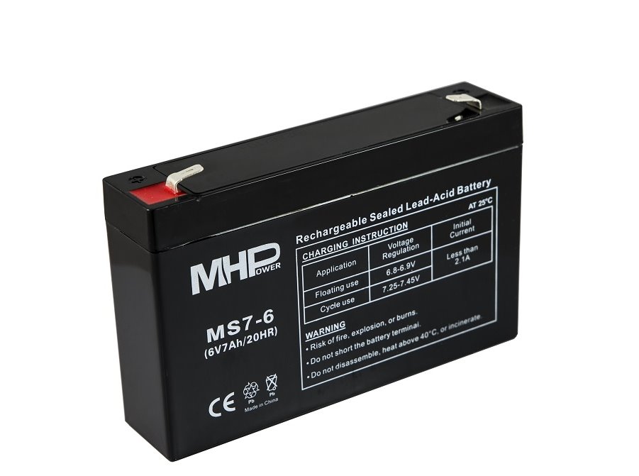 MHPower MS7-6 VRLA AGM je vyrobena technilogií AGM (Absorbed Glass Mat). Výhodou baterie, která je takto vyrobena, je skutečnost, že může pracovat v jakékoliv poloze (nic se z ní nevylije). To je obrovskou výhodou např. v lodním provozu, a vůbec v provozu, kde je tekutý elektrolyt velkým nepřítelem. (otřesy, náklony apod.).