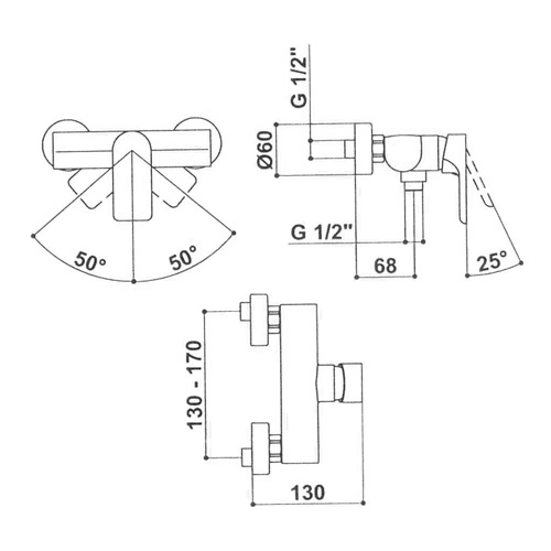 Baterie sprchová nástěnná bez příslušenství, TORINO, inovovaný model