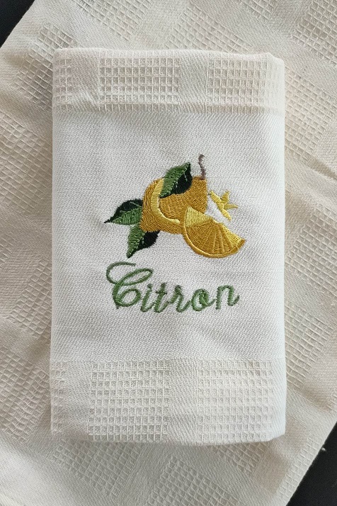 Utěrka má atraktivní jednostranné vyšívání.