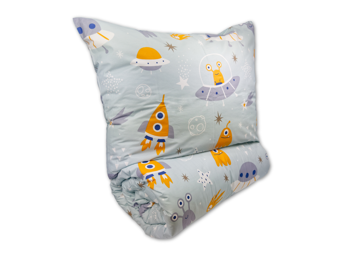 Bavlněné dětské povlečení do malé postýlky 90x135, 45x60 cm Vesmírné UFO (Zapínání: zipový uzávěr)