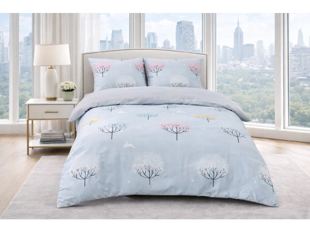 Bavlněné povlečení Modré stromky 140x200, 70x90 cm