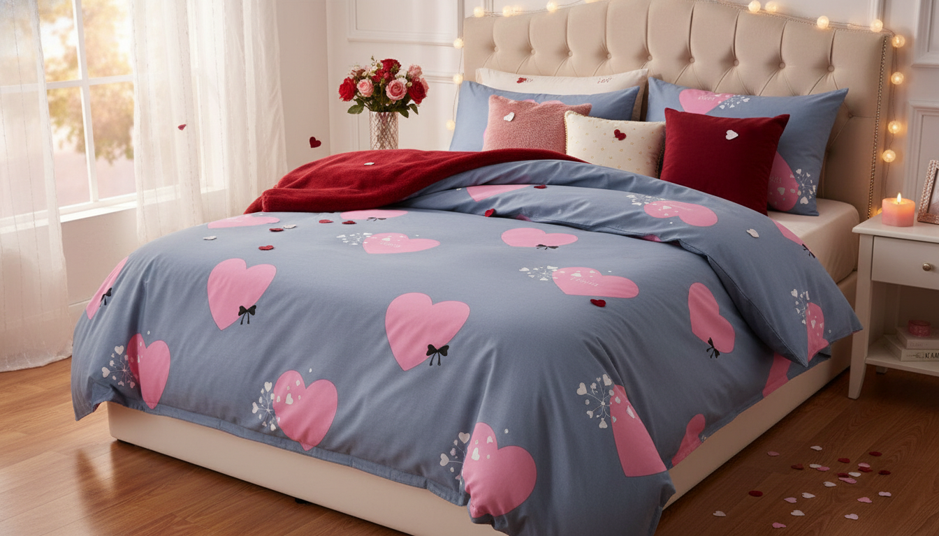 Bavlněné povlečení Srdce s mašlí 140x200, 70x90 cm