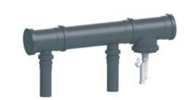 - trubkový kus kaskády O 125/80 s 87° odbočkou a zp. klapkou, délka 1 m – 1 ks