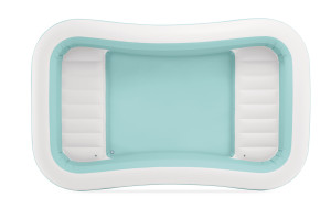 Nafukovací bazén Swim Center™ Family Lounge se zabudovanými sedačkami po obou kratších stranách pro pohodlné posezení. Je vybaven vypouštěcím ventilem. Vhodné pro děti od 6 let. Bazén nabízí dostatek prostoru pro děti i dospělé, a díky svěžímu designu vytvoří příjemnou atmosféru.