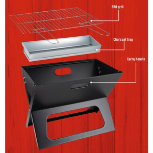 Dotaz na produktGrilování je vždy dobrý nápad. Tento krásný černý přenosný gril z kolekce BBQ si snadno vezmete s sebou. BBQ lze složit do plochého obalu a lze jej přenášet pomocí pohodlných rukojetí. S výškou 46 cm, šířkou 36,5 cm a hloubkou 28 cm můžete na grilu na dřevěné uhlí ugrilovat slušné množství hamburgerů, klobás, ryb, zeleniny a dalších pochutin.Trendy designGril na dřevěné uhlí vypadá velmi cool a moderně. Speciální trojúhelníkový design zajišťuje, že stojí pevně na nohou. To je dobrá věc při zacházení s ohněm a jídlem. Gril má odnímatelnou ohniště, do které můžete umístit dřevěné uhlí nebo brikety. Nerezový rošt má odnímatelné úchyty, abyste si nepopálili ruce. Otevře se extrémně rychle a lze jej během okamžiku opět složit.Užijte si to po mnoho letTento gril si užijete mnoho let. Je vyroben z nerezové oceli a vydrží mnoho let. Vezměte si ho s sebou, když jedete kempovat nebo na výlet. Je také ideální, pokud máte omezený úložný prostor nebo negrilujete často. Ideální také na zahradní párty nebo jinou venkovní akci. Můžete jej také použít jako koš na oheň pro příjemné noci venku.POZOR: Tento výrobek skladujte na suchém místě - nevhodné do deště a špatného počasí.SpecifikaceRozměry: 46 x 36,5 x 28 cmMateriál: nerezová ocelPalivo: dřevěné uhlíSkládací