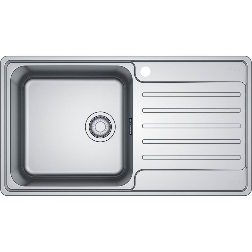 Nerezový dřez Bell. Cena zahrnuje: Sítkový ventil 3 1/2“ s přepadem. Sifon pro úsporu místa 6/4“ s odbočkou na myčku nádobí. Otvor pro baterii ∅ 35 mm. Fixační příchytky Fast-Fix.