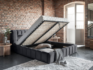 Dotaz na produkt Na splátky ještě dnesLamica je velmi pohodlná, měkká a originální postel v glamour stylu, která zaujme svým nebývalým tvarem a formou. Tento nábytek se skládá z korpusu a kovového rámu. Má také dva prostorné úložné prostory na ložní prádlo. Rozměry spací plochy – můžete si vybrat ze tří verzí – 140/160/180x200 cm – poskytují dostatek prostoru pro relaxační odpočinek v ložnici různých velikostí, který bude vyhovovat vašim preferencím a možnostem. Naše postel se vyznačuje svým zpracováním, protože vysoká opěrka hlavy a boky postele jsou vytvořeny s dodatečnou pěnou. Estetický zážitek je umocněn podélným, rozsáhlým prošíváním. Široká škála barevných možností usnadňuje sladění postele s celým pokojem. Další výhodou je opěrka hlavy s LED osvětlením, díky kterému bude odpočinek ještě příjemnější. V tomto případě jde modernita a moderní provedení ruku v ruce s elegancí, díky čemuž bude Lamica vždy ideální volbou. Určitě stojí za to ho mít.Látka: Monolith 85