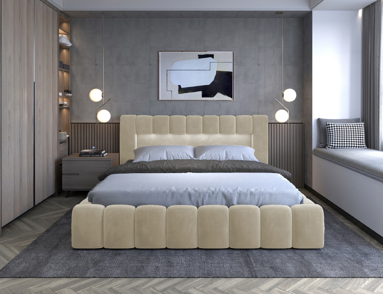 Dotaz na produkt Na splátky ještě dnesLamica je velmi pohodlná, měkká a originální postel v glamour stylu, která zaujme svým nebývalým tvarem a formou. Tento nábytek se skládá z korpusu a kovového rámu. Má také dva prostorné úložné prostory na ložní prádlo. Rozměry spací plochy – můžete si vybrat ze tří verzí – 140/160/180x200 cm – poskytují dostatek prostoru pro relaxační odpočinek v ložnici různých velikostí, který bude vyhovovat vašim preferencím a možnostem. Naše postel se vyznačuje svým zpracováním, protože vysoká opěrka hlavy a boky postele jsou vytvořeny s dodatečnou pěnou. Estetický zážitek je umocněn podélným, rozsáhlým prošíváním. Široká škála barevných možností usnadňuje sladění postele s celým pokojem. Další výhodou je opěrka hlavy s LED osvětlením, díky kterému bude odpočinek ještě příjemnější. V tomto případě jde modernita a moderní provedení ruku v ruce s elegancí, díky čemuž bude Lamica vždy ideální volbou. Určitě stojí za to ho mít.Látka: Monolith 04