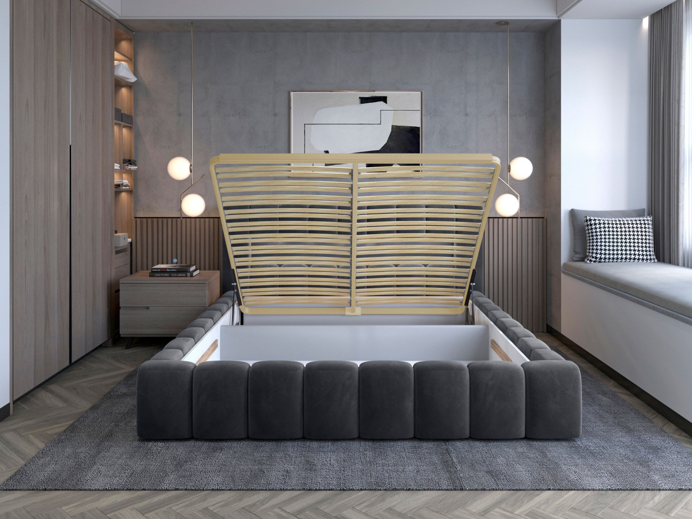 Dotaz na produkt Na splátky ještě dnesLamica je velmi pohodlná, měkká a originální postel v glamour stylu, která zaujme svým nebývalým tvarem a formou. Tento nábytek se skládá z korpusu a dřevěného rámu. Má také dva prostorné úložné prostory na ložní prádlo. Rozměry spací plochy – můžete si vybrat ze tří verzí – 140/160/180x200 cm – poskytují dostatek prostoru pro relaxační odpočinek v ložnici různých velikostí, který bude vyhovovat vašim preferencím a možnostem. Naše postel se vyznačuje svým zpracováním, protože vysoká opěrka hlavy a boky postele jsou vytvořeny s dodatečnou pěnou. Estetický zážitek je umocněn podélným, rozsáhlým prošíváním. Široká škála barevných možností usnadňuje sladění postele s celým pokojem. Další výhodou je opěrka hlavy s LED osvětlením, díky kterému bude odpočinek ještě příjemnější. V tomto případě jde modernita a moderní provedení ruku v ruce s elegancí, díky čemuž bude Lamica vždy ideální volbou. Určitě stojí za to ho mít.Látka: Monolith 97