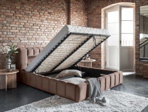 Dotaz na produkt Na splátky ještě dnesLamica je velmi pohodlná, měkká a originální postel v glamour stylu, která zaujme svým nebývalým tvarem a formou. Tento nábytek se skládá z korpusu a kovového rámu. Má také dva prostorné úložné prostory na ložní prádlo. Rozměry spací plochy – můžete si vybrat ze tří verzí – 140/160/180x200 cm – poskytují dostatek prostoru pro relaxační odpočinek v ložnici různých velikostí, který bude vyhovovat vašim preferencím a možnostem. Naše postel se vyznačuje svým zpracováním, protože vysoká opěrka hlavy a boky postele jsou vytvořeny s dodatečnou pěnou. Estetický zážitek je umocněn podélným, rozsáhlým prošíváním. Široká škála barevných možností usnadňuje sladění postele s celým pokojem. Další výhodou je opěrka hlavy s LED osvětlením, díky kterému bude odpočinek ještě příjemnější. V tomto případě jde modernita a moderní provedení ruku v ruce s elegancí, díky čemuž bude Lamica vždy ideální volbou. Určitě stojí za to ho mít. Materiál: Monolith 09
