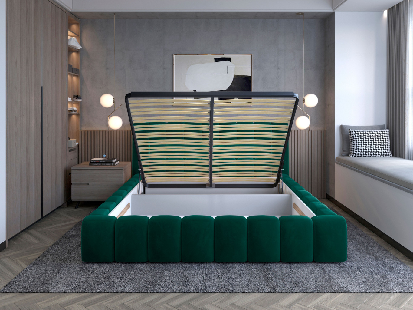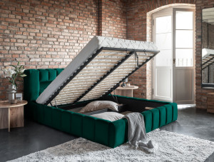 Dotaz na produkt Na splátky ještě dnesLamica je velmi pohodlná, měkká a originální postel v glamour stylu, která zaujme svým nebývalým tvarem a formou. Tento nábytek se skládá z korpusu a kovového rámu. Má také dva prostorné úložné prostory na ložní prádlo. Rozměry spací plochy – můžete si vybrat ze tří verzí – 140/160/180x200 cm – poskytují dostatek prostoru pro relaxační odpočinek v ložnici různých velikostí, který bude vyhovovat vašim preferencím a možnostem. Naše postel se vyznačuje svým zpracováním, protože vysoká opěrka hlavy a boky postele jsou vytvořeny s dodatečnou pěnou. Estetický zážitek je umocněn podélným, rozsáhlým prošíváním. Široká škála barevných možností usnadňuje sladění postele s celým pokojem. Další výhodou je opěrka hlavy s LED osvětlením, díky kterému bude odpočinek ještě příjemnější. V tomto případě jde modernita a moderní provedení ruku v ruce s elegancí, díky čemuž bude Lamica vždy ideální volbou. Určitě stojí za to ho mít. Materiál: Monolith 37
