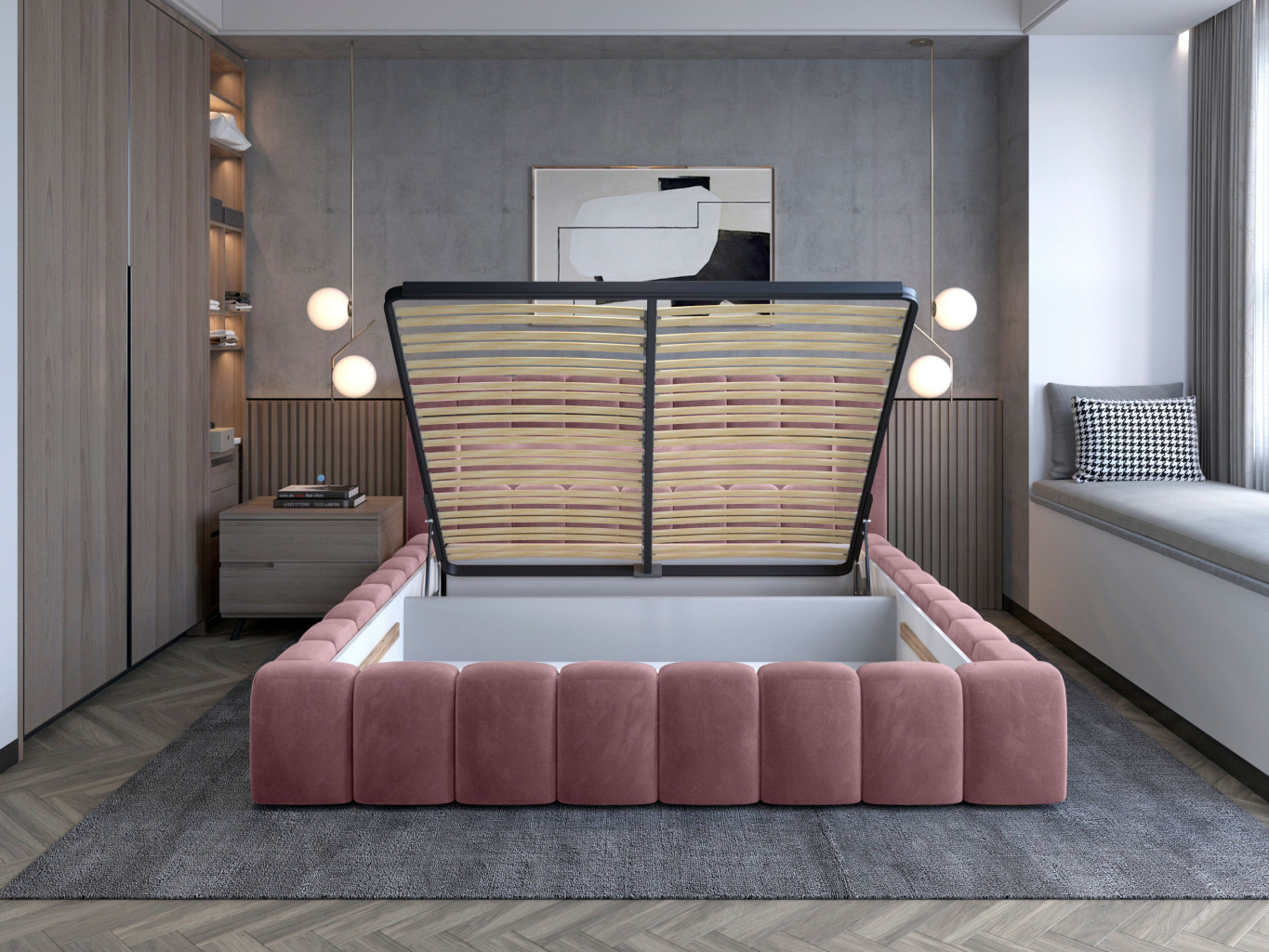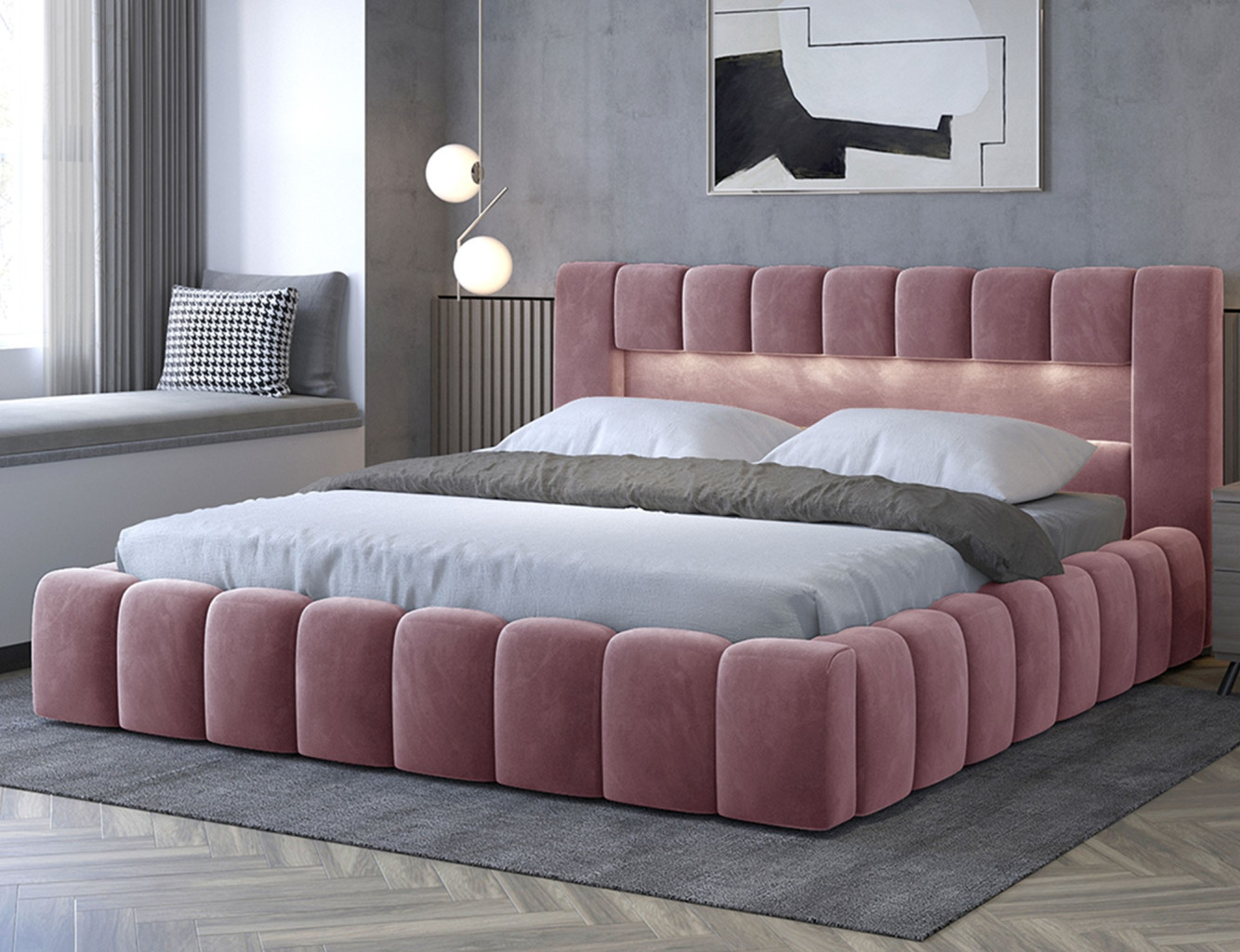 Dotaz na produkt Na splátky ještě dnesLamica je velmi pohodlná, měkká a originální postel v glamour stylu, která zaujme svým nebývalým tvarem a formou. Tento nábytek se skládá z korpusu a kovového rámu. Má také dva prostorné úložné prostory na ložní prádlo. Rozměry spací plochy – můžete si vybrat ze tří verzí – 140/160/180x200 cm – poskytují dostatek prostoru pro relaxační odpočinek v ložnici různých velikostí, který bude vyhovovat vašim preferencím a možnostem. Naše postel se vyznačuje svým zpracováním, protože vysoká opěrka hlavy a boky postele jsou vytvořeny s dodatečnou pěnou. Estetický zážitek je umocněn podélným, rozsáhlým prošíváním. Široká škála barevných možností usnadňuje sladění postele s celým pokojem. Další výhodou je opěrka hlavy s LED osvětlením, díky kterému bude odpočinek ještě příjemnější. V tomto případě jde modernita a moderní provedení ruku v ruce s elegancí, díky čemuž bude Lamica vždy ideální volbou. Určitě stojí za to ho mít. Materiál: Monolith 63
