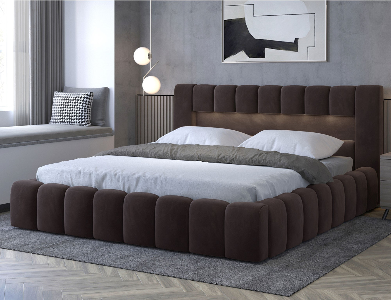 Dotaz na produkt Na splátky ještě dnesLamica je velmi pohodlná, měkká a originální postel v glamour stylu, která zaujme svým nebývalým tvarem a formou. Tento nábytek se skládá z korpusu a dřevěného rámu. Má také dva prostorné úložné prostory na ložní prádlo. Rozměry spací plochy – můžete si vybrat ze tří verzí – 140/160/180x200 cm – poskytují dostatek prostoru pro relaxační odpočinek v ložnici různých velikostí, který bude vyhovovat vašim preferencím a možnostem. Naše postel se vyznačuje svým zpracováním, protože vysoká opěrka hlavy a boky postele jsou vytvořeny s dodatečnou pěnou. Estetický zážitek je umocněn podélným, rozsáhlým prošíváním. Široká škála barevných možností usnadňuje sladění postele s celým pokojem. Další výhodou je opěrka hlavy s LED osvětlením, díky kterému bude odpočinek ještě příjemnější. V tomto případě jde modernita a moderní provedení ruku v ruce s elegancí, díky čemuž bude Lamica vždy ideální volbou. Určitě stojí za to ho mít. Materiál: Monolith 29