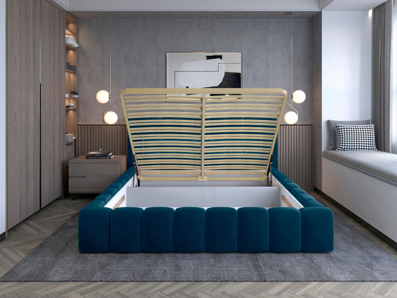 Dotaz na produkt Na splátky ještě dnesLamica je velmi pohodlná, měkká a originální postel v glamour stylu, která zaujme svým nebývalým tvarem a formou. Tento nábytek se skládá z korpusu a dřevěného rámu. Má také dva prostorné úložné prostory na ložní prádlo. Rozměry spací plochy – můžete si vybrat ze tří verzí – 140/160/180x200 cm – poskytují dostatek prostoru pro relaxační odpočinek v ložnici různých velikostí, který bude vyhovovat vašim preferencím a možnostem. Naše postel se vyznačuje svým zpracováním, protože vysoká opěrka hlavy a boky postele jsou vytvořeny s dodatečnou pěnou. Estetický zážitek je umocněn podélným, rozsáhlým prošíváním. Široká škála barevných možností usnadňuje sladění postele s celým pokojem. Další výhodou je opěrka hlavy s LED osvětlením, díky kterému bude odpočinek ještě příjemnější. V tomto případě jde modernita a moderní provedení ruku v ruce s elegancí, díky čemuž bude Lamica vždy ideální volbou. Určitě stojí za to ho mít.Látka: Monolith 77