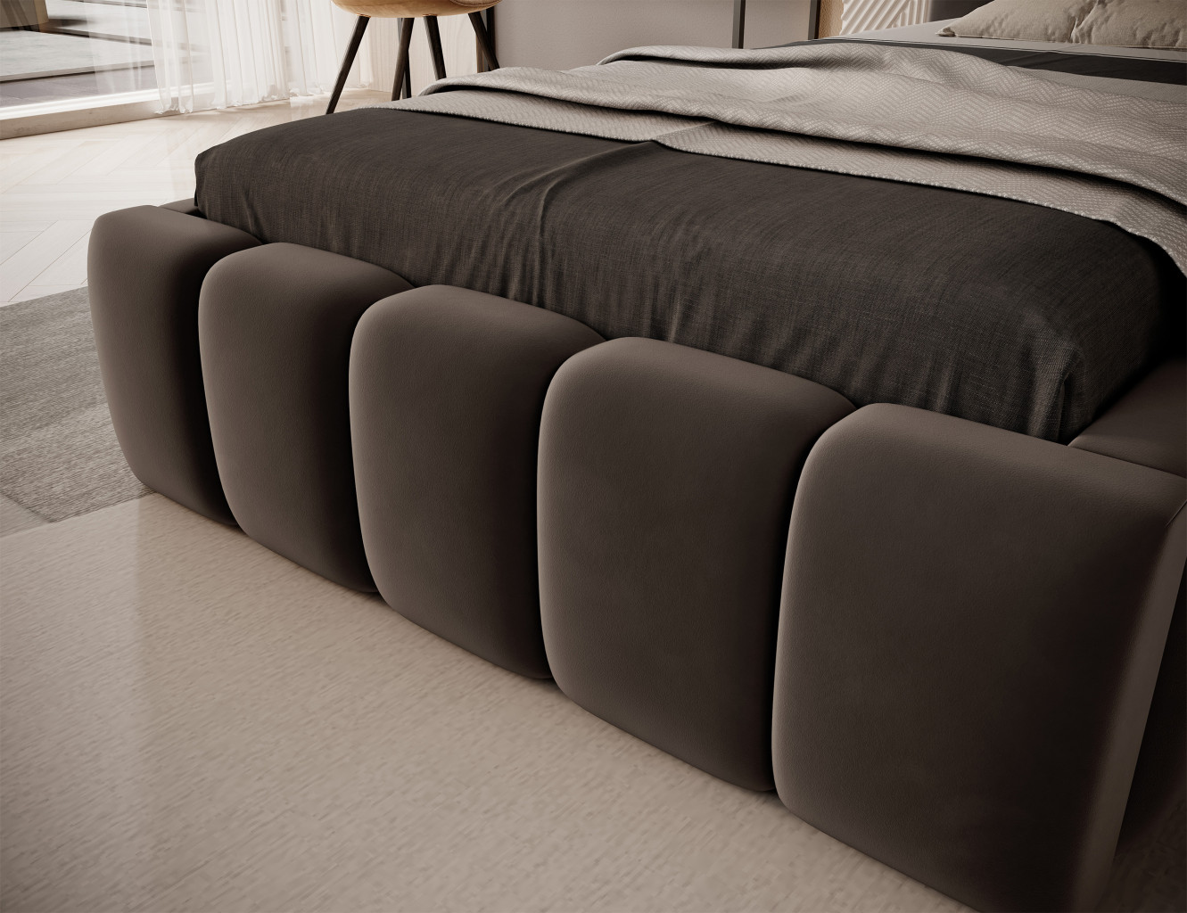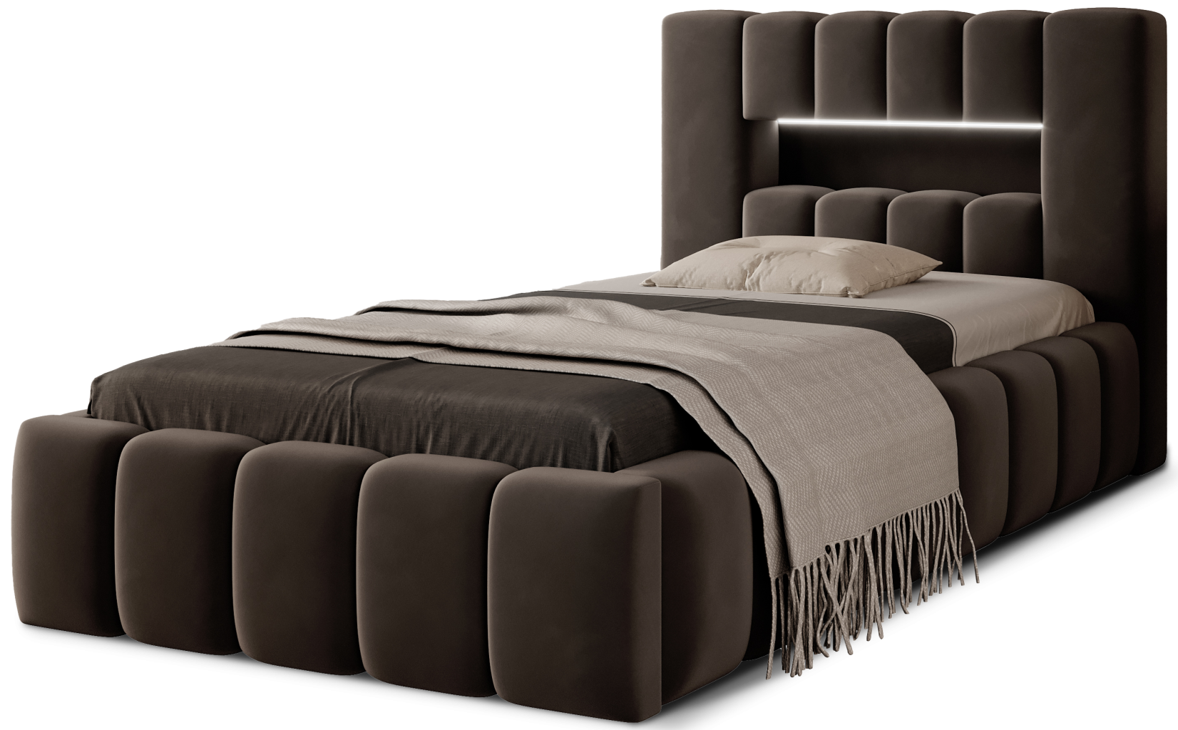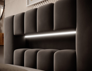 Dotaz na produkt Na splátky ještě dnesLamica je velmi pohodlná, měkká a originální postel v glamour stylu, která zaujme svým nebývalým tvarem a formou. Tento nábytek se skládá z korpusu a dřevěného rámu. Má také přihrádku na ložní prádlo. Velikost spací plochy 90x200 cm poskytuje dostatek prostoru pro relaxační odpočinek. Naše postel se vyznačuje svým zpracováním, protože vysoká opěrka hlavy a boky postele jsou vyrobeny z dodatečné pěny. Estetický zážitek je umocněn podélným, rozsáhlým prošíváním. Široká škála barevných možností usnadňuje sladění postele s celým pokojem. Další výhodou je opěrka hlavy s LED osvětlením, díky kterému bude odpočinek ještě příjemnější. V tomto případě jde modernita a moderní provedení ruku v ruce s elegancí, díky čemuž bude Lamica vždy ideální volbou. Určitě stojí za to ho mít.Látka: Nube 22